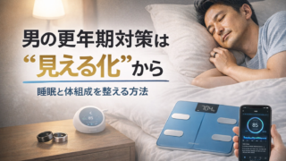 男の更年期は「突然」じゃない。だから“毎日の見える化”が効く 男性更年期(いわゆるLOH)っぽい不調は、ある日いきなり起こるというより、睡眠不足・睡眠の質の低下、体重増加、運動不足、ストレスといった“日常のズレ”が積み上がって表に出てきます...