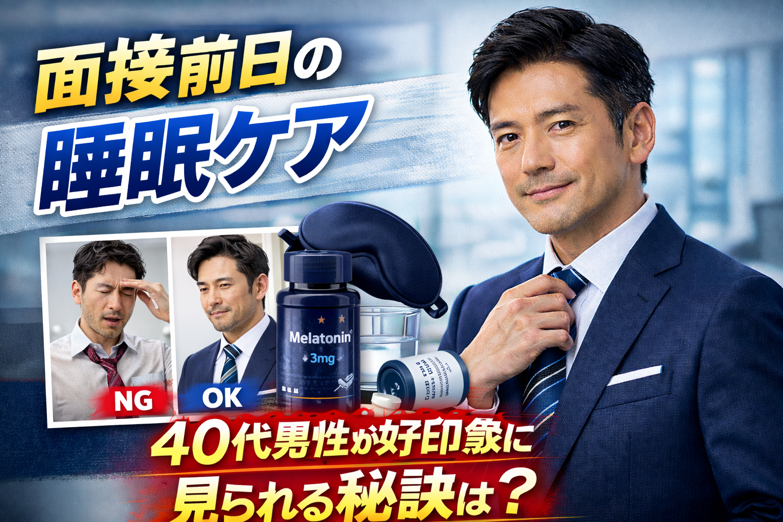 そんな不安を抱える40代男性は多いはずです。どれだけスキンケア・ヒゲケア・服装を完璧に整えても、睡眠不足では顔色が悪く、目にクマができ、集中力も低下します。面接当日のコンディションを最大化するために、前日夜の睡眠ケアは非常に重要です。